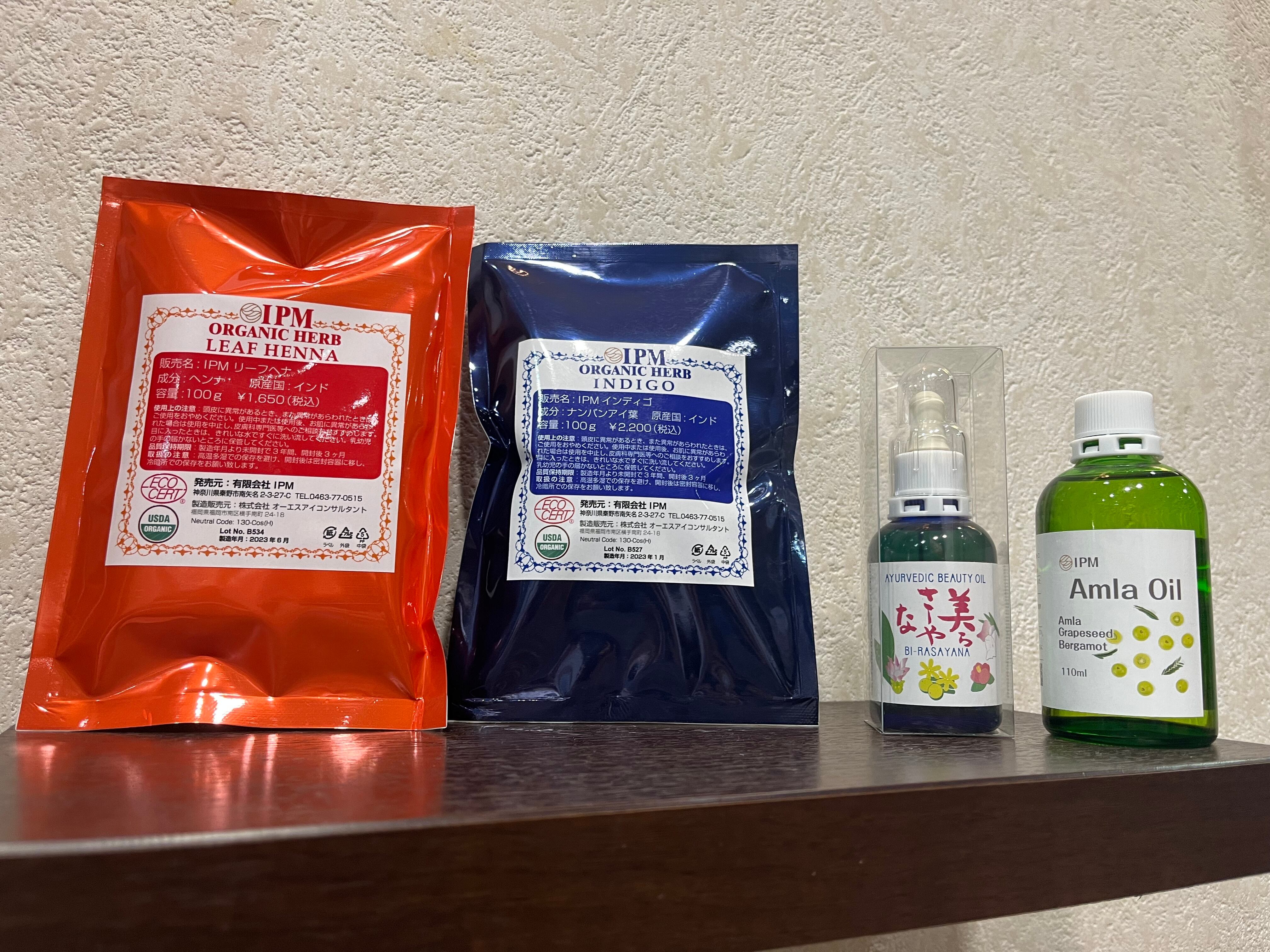 ご自宅で白髪染めに挑戦する方におすすめのセットです。IPMリーフヘナ&インディゴ、オイル2つの4点セットで、初めてヘナで染める方に必要な商品のセットをご用意致しました。